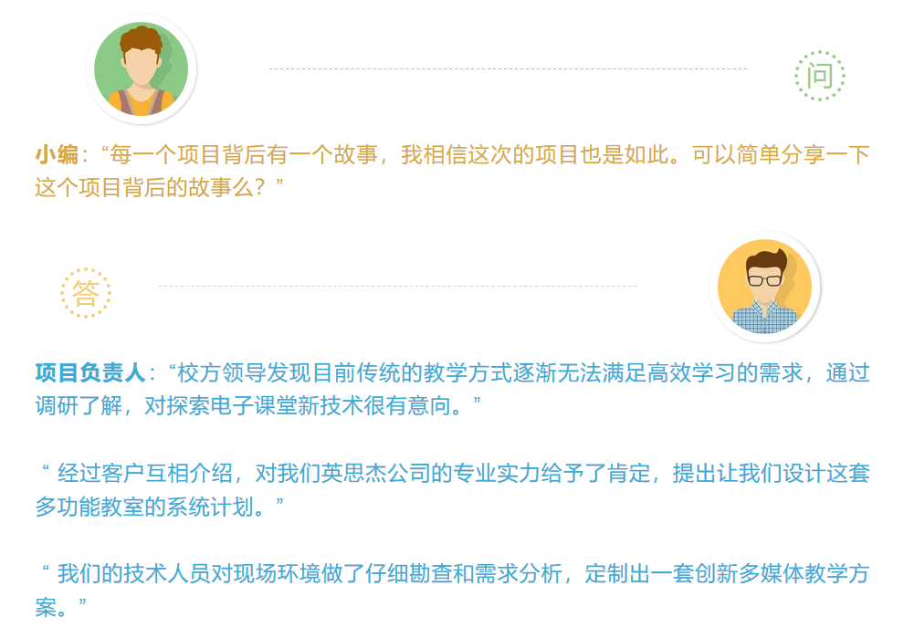 英思杰建设项目包括以上三部分的通信、音视频、控制及周边等系统功能设计、集成实施、系统培训及维护等内容。