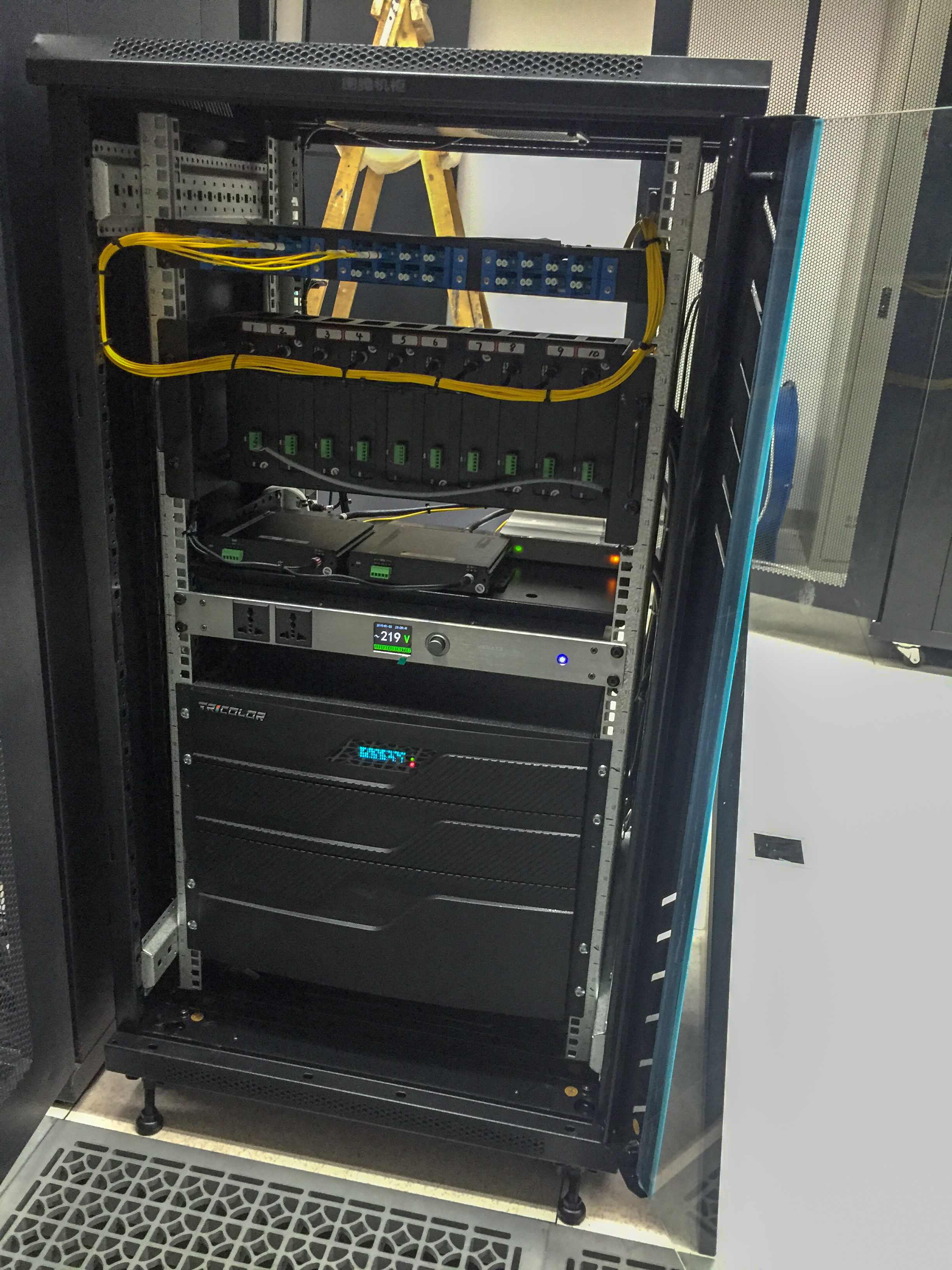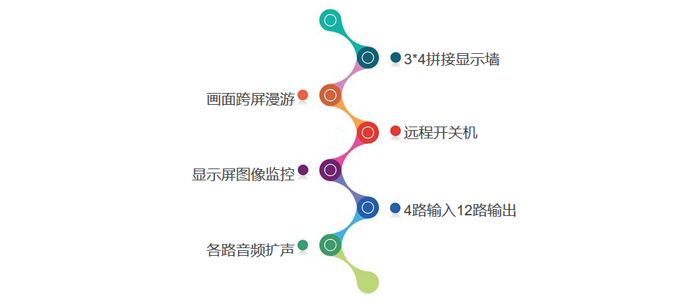 设备控制机柜安装于二楼设备机房,液晶拼接屏到二楼机房之间布线路由长度约250米。为方便使用者操作,配置了光纤传输系统以及视频监控系统。