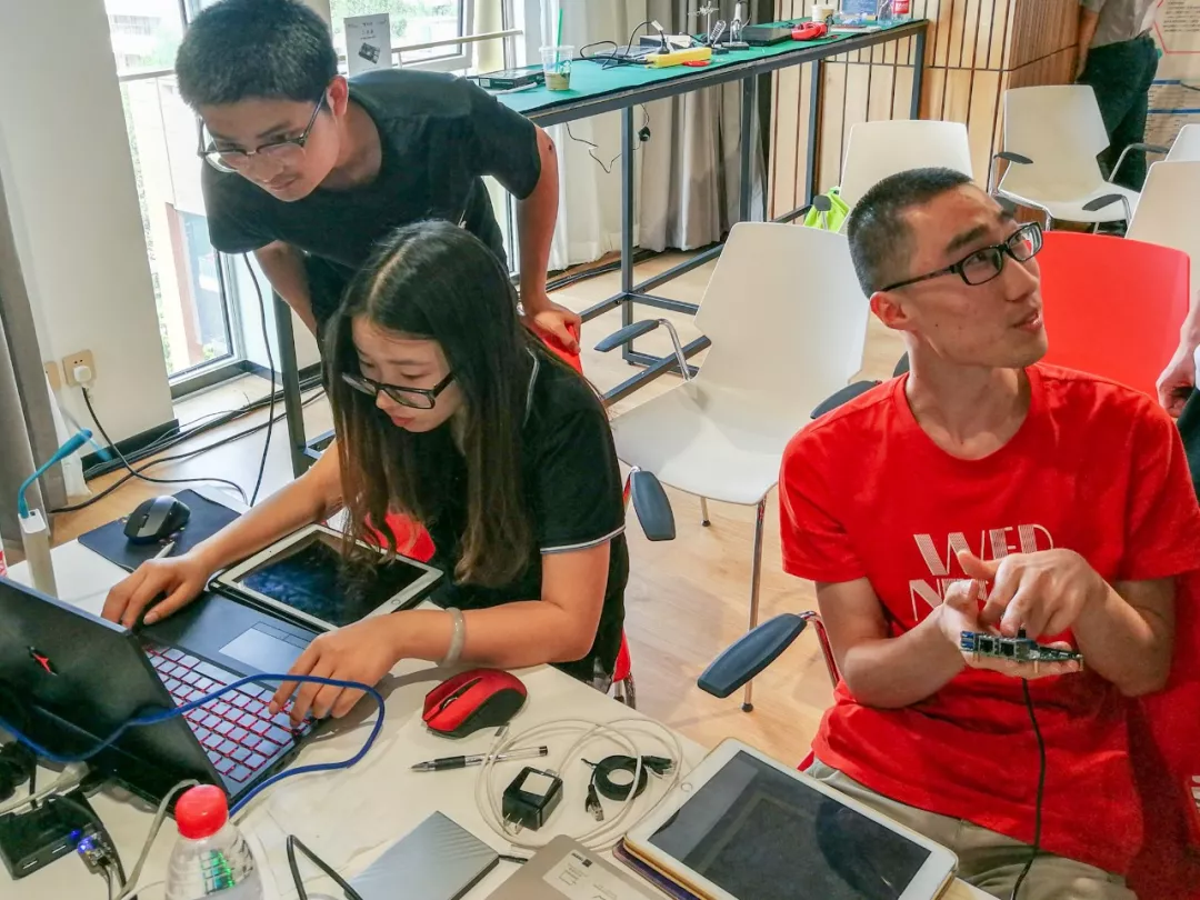 短暂的休息之后,是由英思杰.匠牛社区的产品经理王楠楠老师和郭崇禹老师对与会师生进行了开发环境搭建、软硬件的基本操作的讲解,并结合实际案例,对“工业派”的操作进行了演示,王楠楠老师和郭崇禹老师的讲解深入浅出,贯穿融会,在场师生聚精会神,心无旁骛。王楠楠老师和郭崇禹老师2个小时的讲解在与会师生的掌声中结束,在场的同学都茅塞顿开,收获满满。
